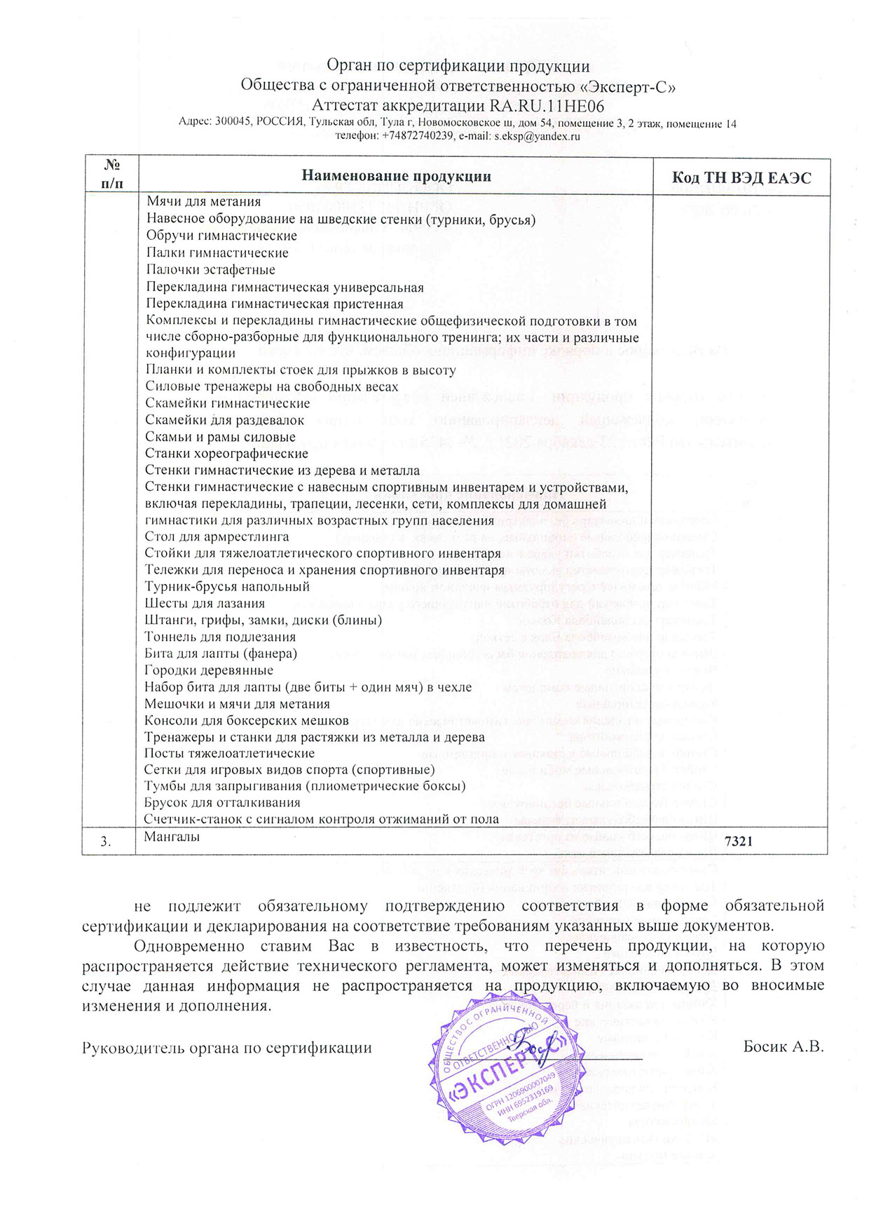Сертификат соответствия инвентарь 2